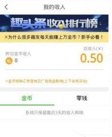 1. 头条广告分成:当你积累了一定的金币后,可以选择将金币兑换成现金,参与头条的广告分成。只要你的内容被广告商选中,你就能获得相应的收益。